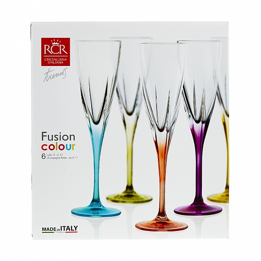 Фужер для шампанского RCR Fusion Color 170 мл, D68 мм, H235 мм, хрустальное стекло, Италия