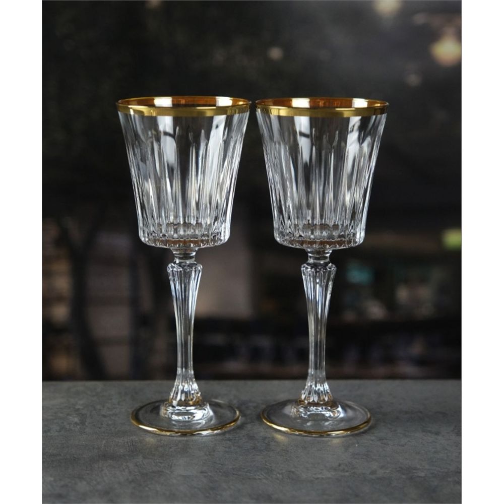 Коллекция TimeLess: Классика, проверенная временем. Чистые, элегантные линии этих бокалов в сочетании с золотыми кольцами на ножке и ободке создают атмосферу вневременной аристократичности и утонченного вкуса. Это выбор для тех, кто ценит сдержанную роскошь.
